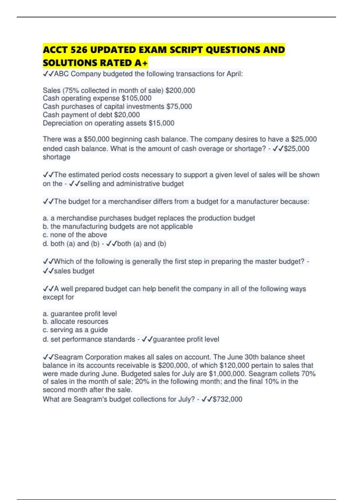 ACCT 526 UPDATED EXAM SCRIPT QUESTIONS AND