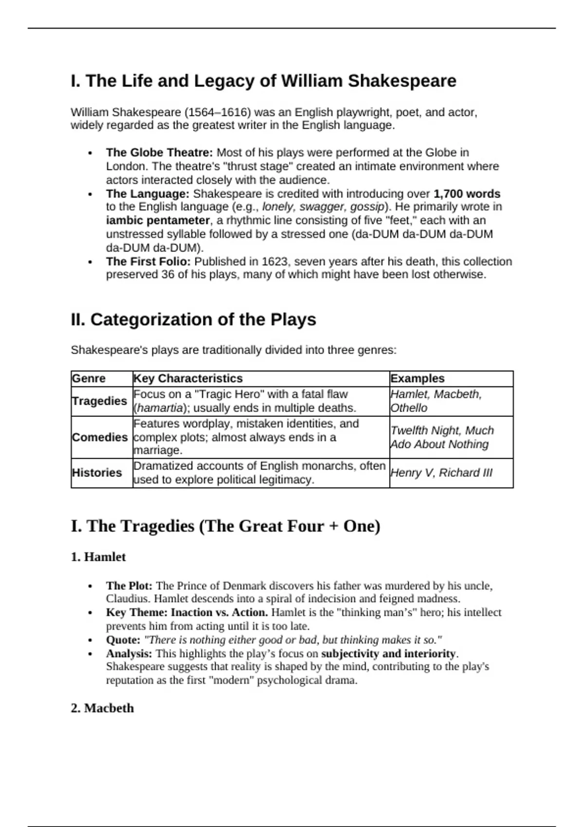 Focus on a "Tragic Hero" with a fatal flaw Hamlet, Macbeth,