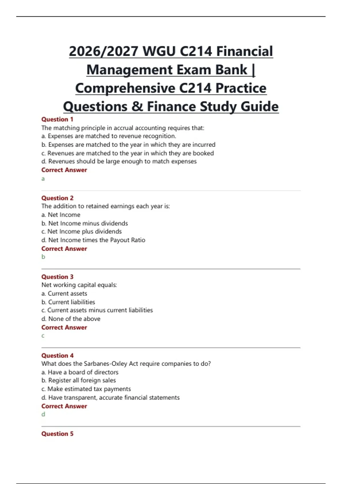 Questions & Finance Study Guide