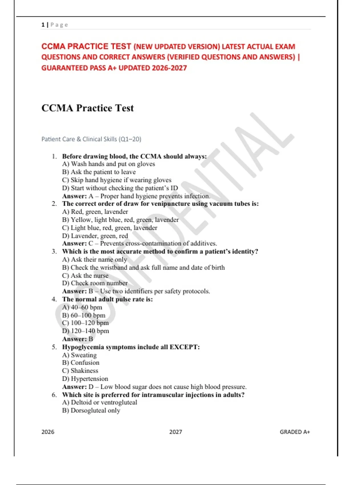 CCMA PRACTICE TEST (NEW UPDATED VERSION) LATEST ACTUAL EXAM