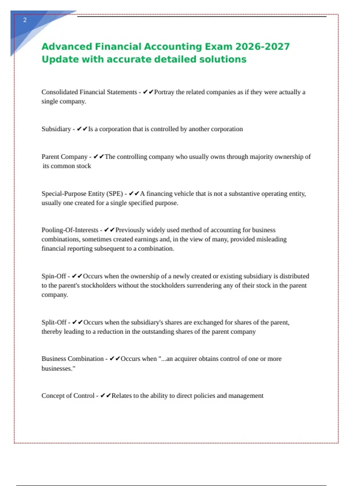Parent-Subsidiary Relationship - ✔✔The relationship that is created in a stock acquisition || || || || || || || || || || ||