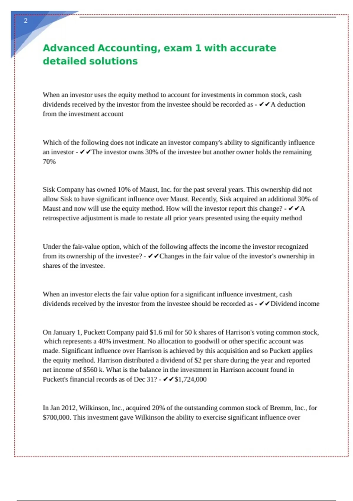 Advanced Accounting, exam 1 with accurate || || || || || ||