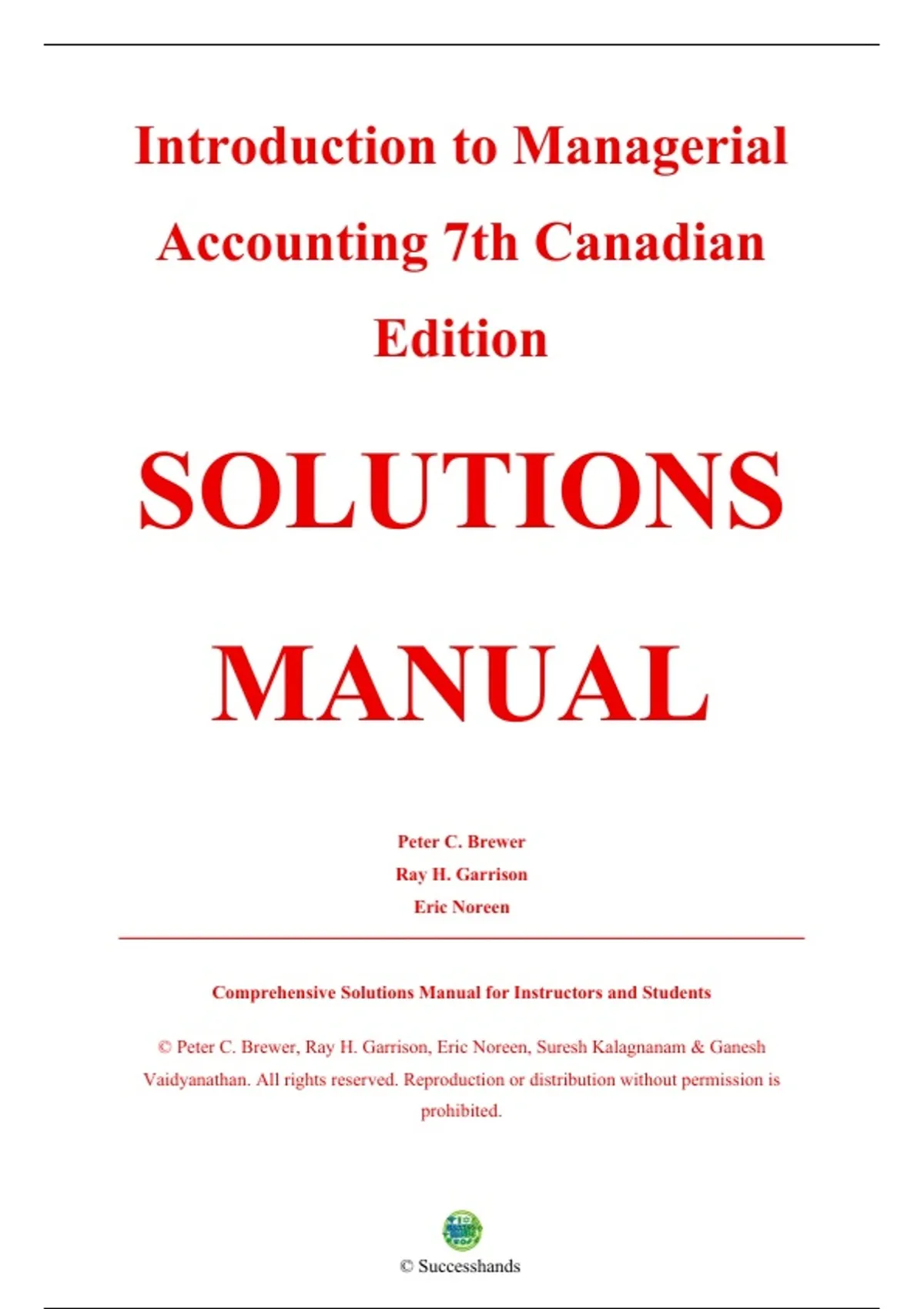 Complete Solutions Manual — Introduction to Managerial Accounting, 7th Canadian Edition — Peter C. Brewer — (All Chapters Covered 1–14, Solutions Included)