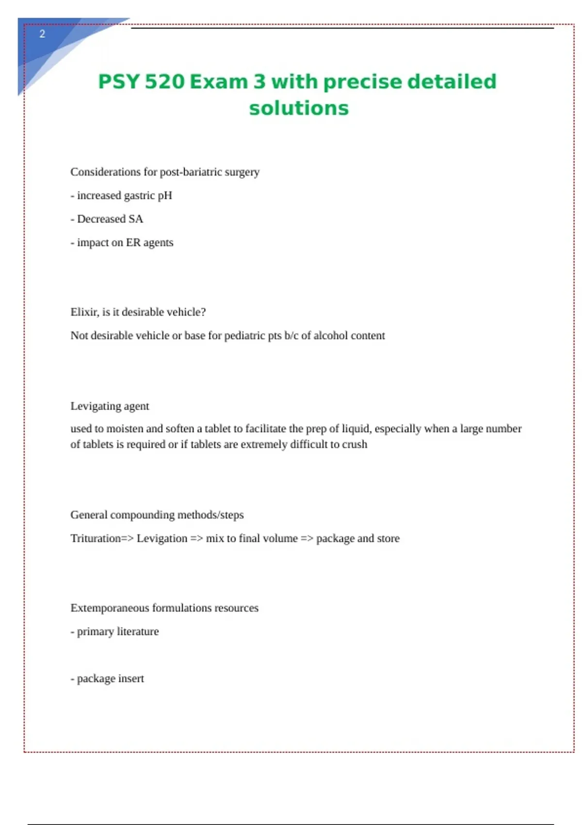 PSY 520 Exam 3 with precise detailed || || || || || || ||