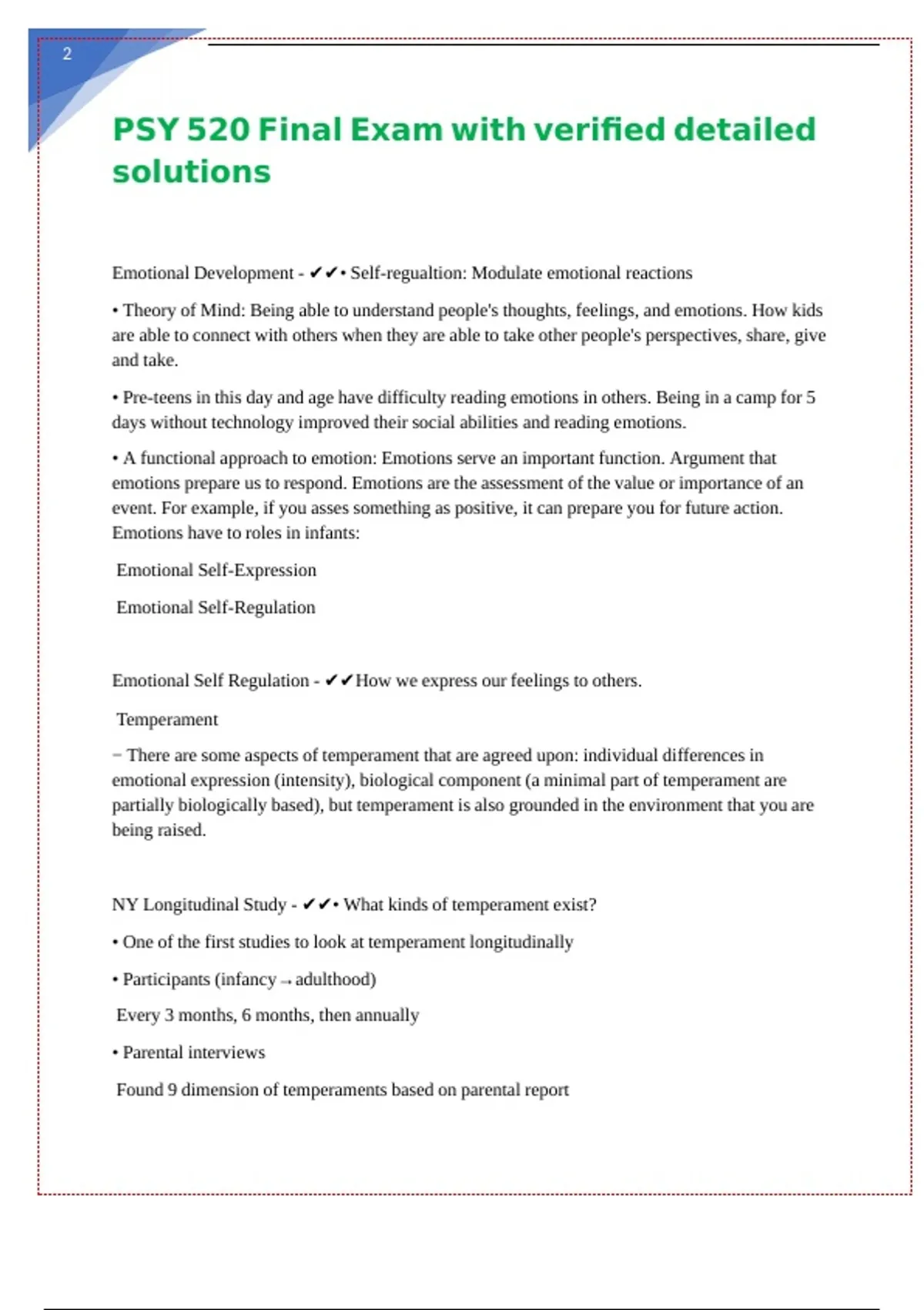 PSY 520 Final Exam with verified detailed || || || || || || ||