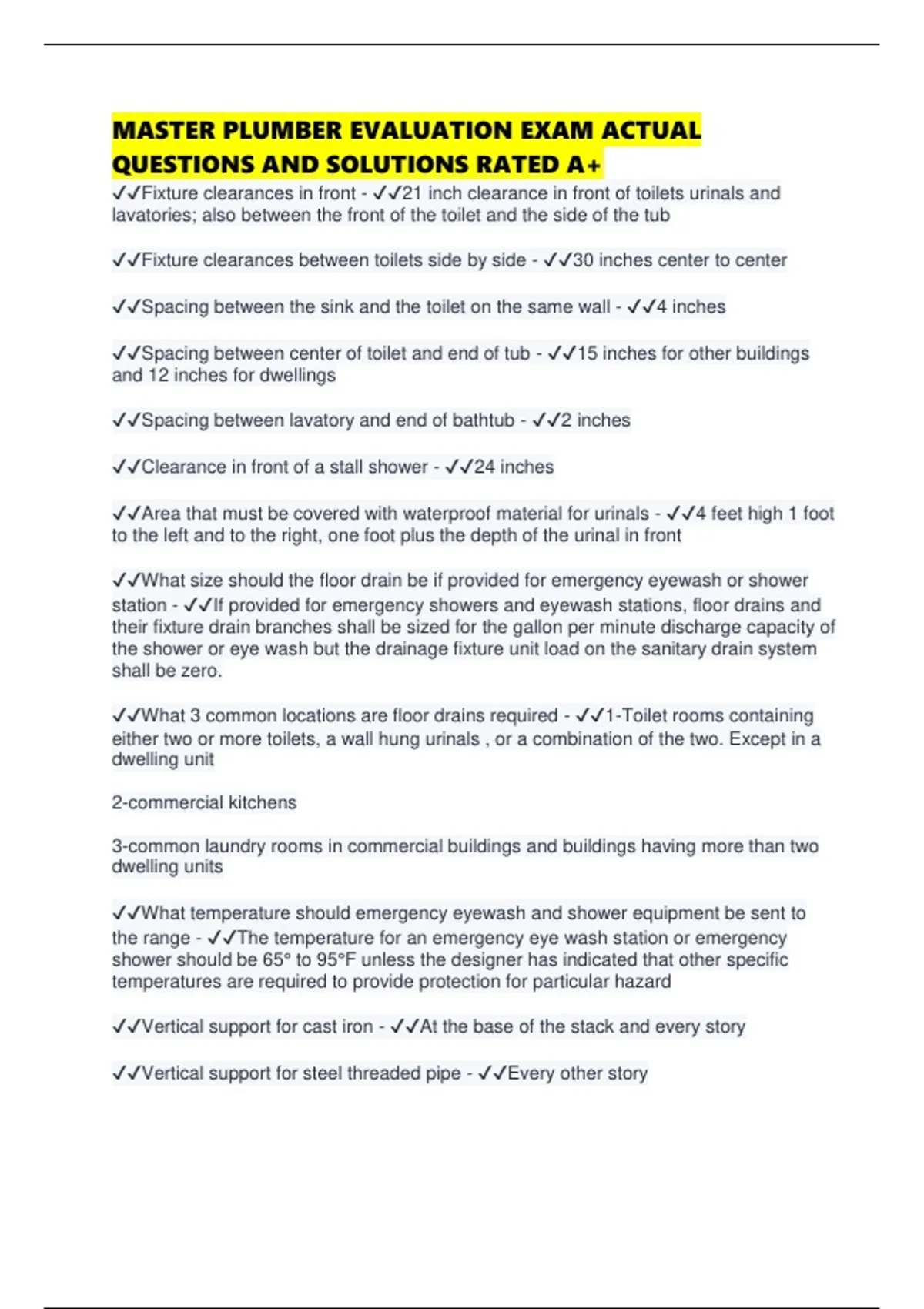 MASTER PLUMBER EVALUATION EXAM ACTUAL QUESTIONS AND SOLUTIONS RATED A+