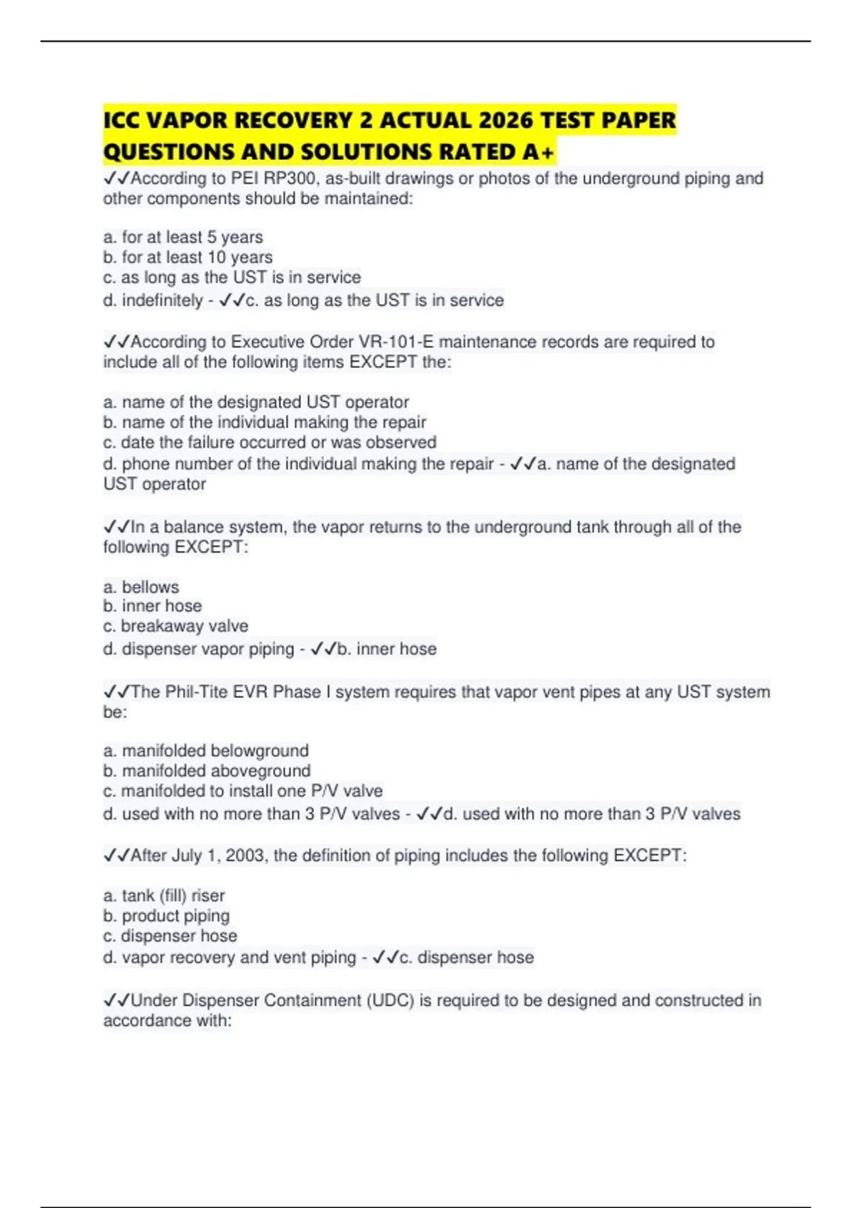 d. vapor recovery and vent piping - ✔✔c. dispenser hose