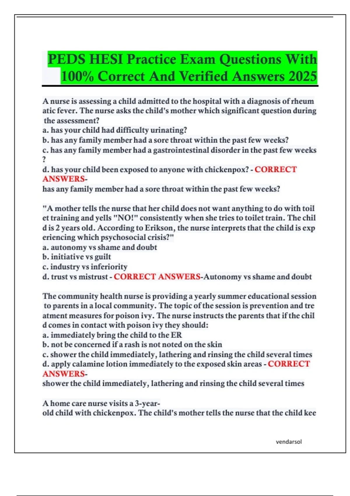 iCORRECT ANSWERS-