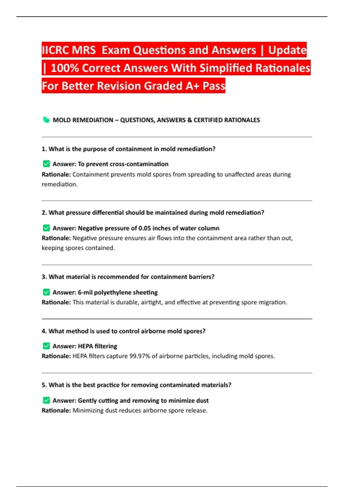 MOLD REMEDIATION – QUESTIONS, ANSWERS & CERTIFIED RATIONALES