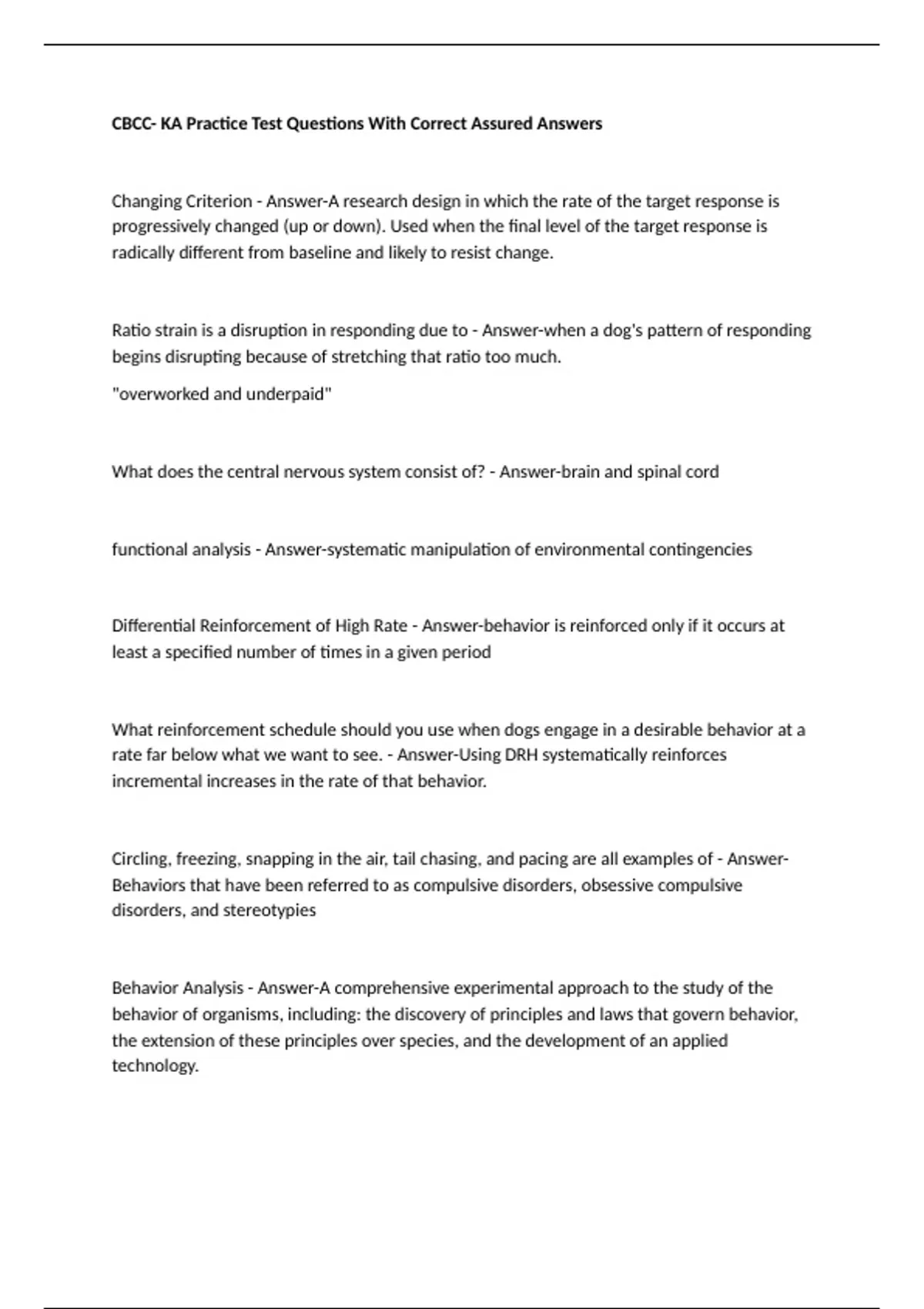 CBCC- KA Practice Test Questions With Correct Assured Answers