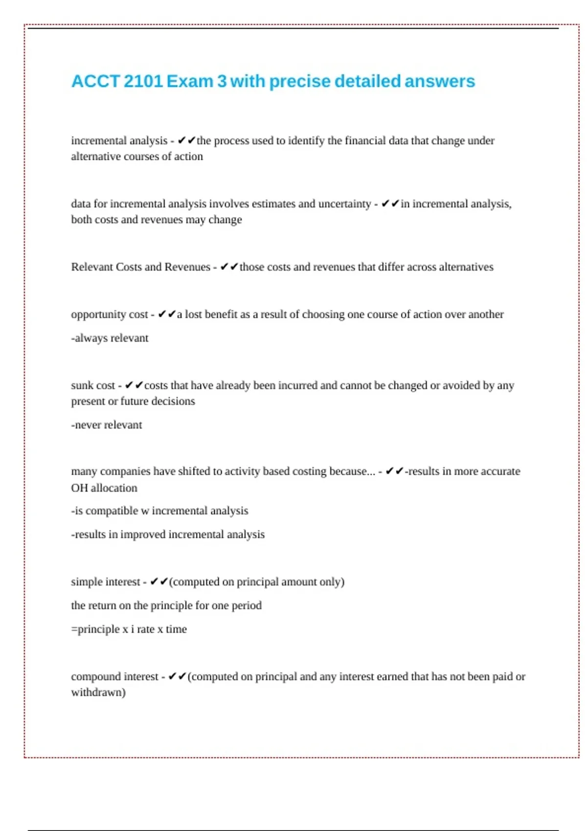 ACCT 2101 Exam 3 with precise detailed answers || || || || || || ||