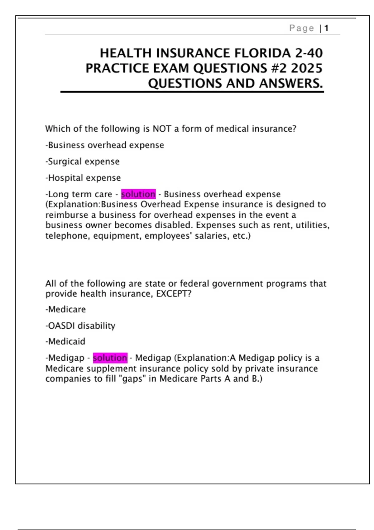 Prepare for the Florida Health Insurance Exam 2025 with Practice Exam #2 featuring 240 accurate exam-style questions and correct answers. This Florida insurance exam prep resource helps candidates master state insurance laws, policy provisions, and health coverage concepts for confident licensing exam success.