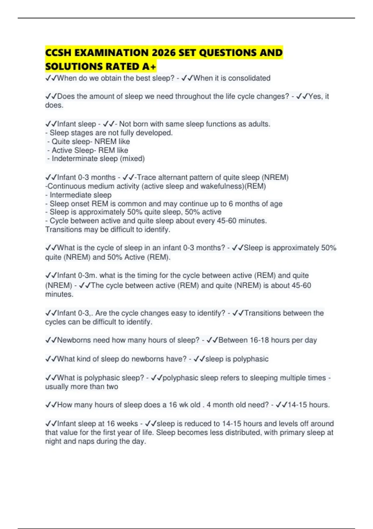 CCSH EXAMINATION 2026 SET QUESTIONS AND SOLUTIONS RATED A+