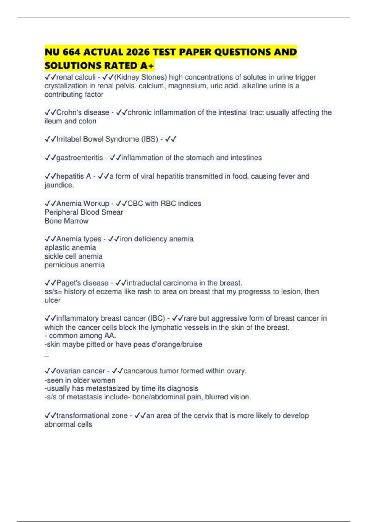 NU 664 ACTUAL 2026 TEST PAPER QUESTIONS AND SOLUTIONS RATED A+