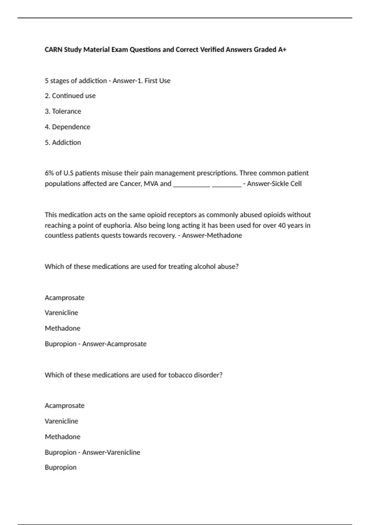 CARN Study Material Exam Questions and Correct Verified Answers Graded A+