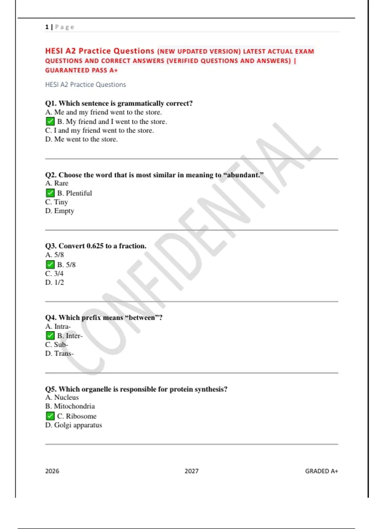 HESI A2 Practice Questions (NEW UPDATED VERSION) LATEST ACTUAL EXAM