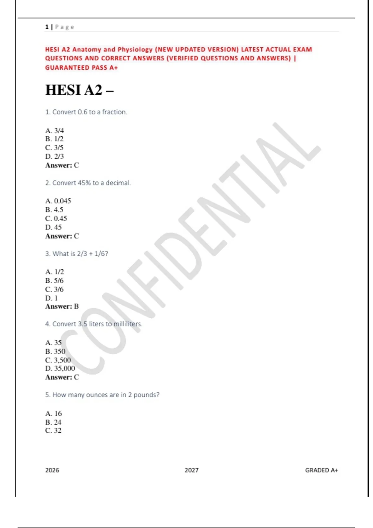 HESI A2 Anatomy and Physiology (NEW UPDATED VERSION) LATEST ACTUAL EXAM