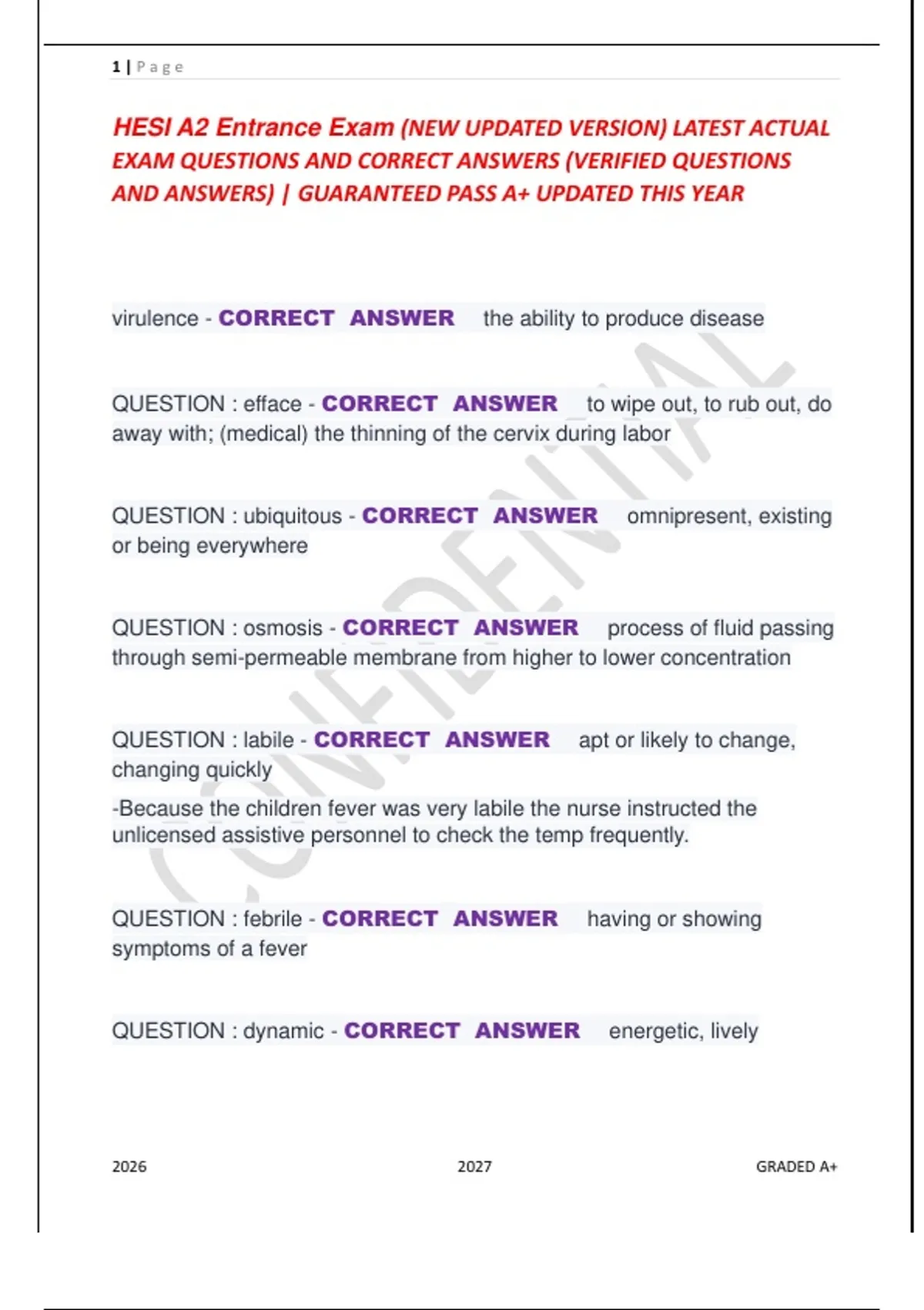 HESI A2 Entrance Exam (NEW UPDATED VERSION) LATEST ACTUAL