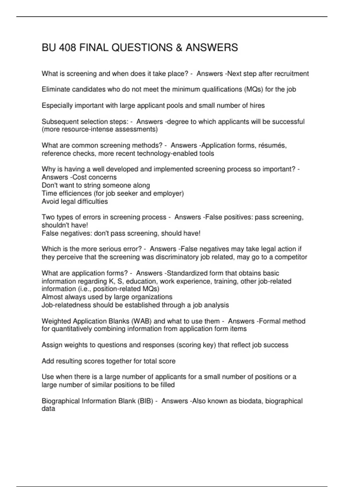 BU 408 FINAL QUESTIONS & ANSWERS