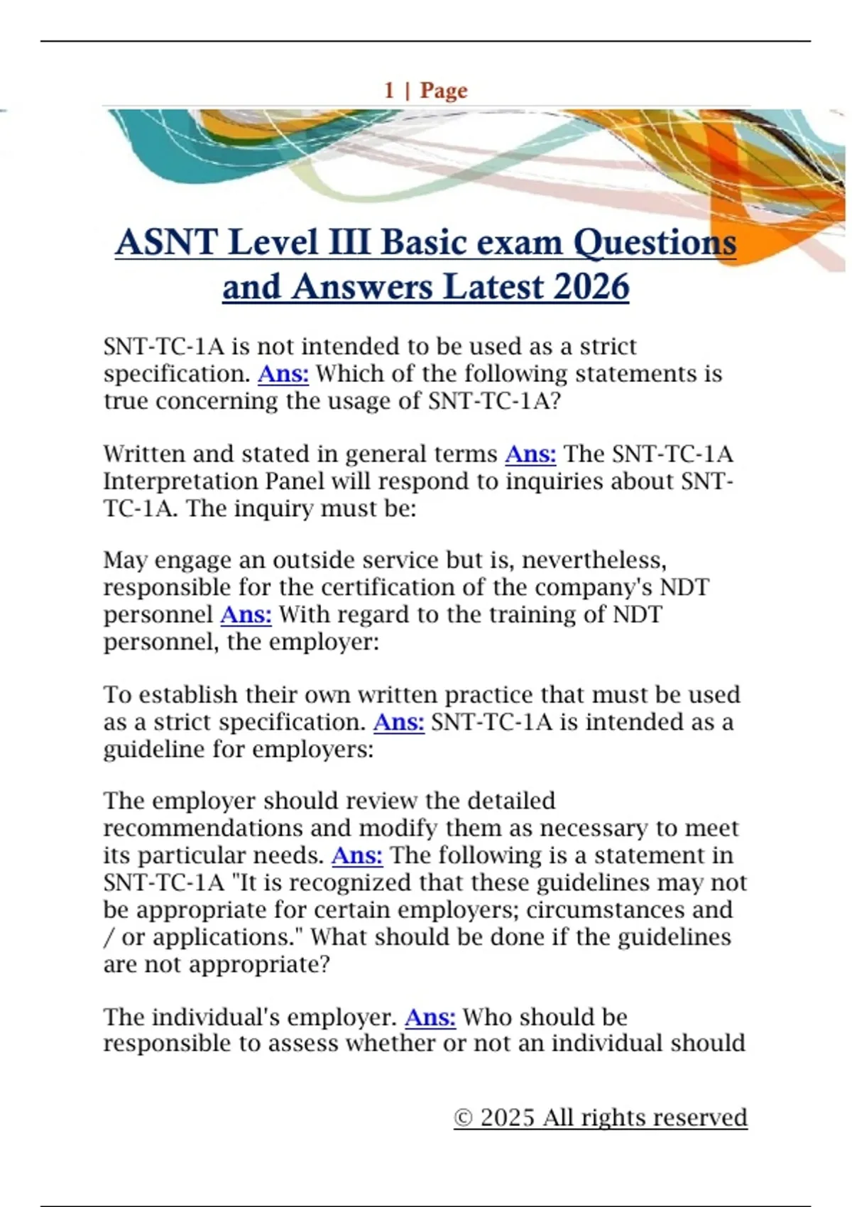 ASNT Level III Basic exam Questions and Answers Latest 2026