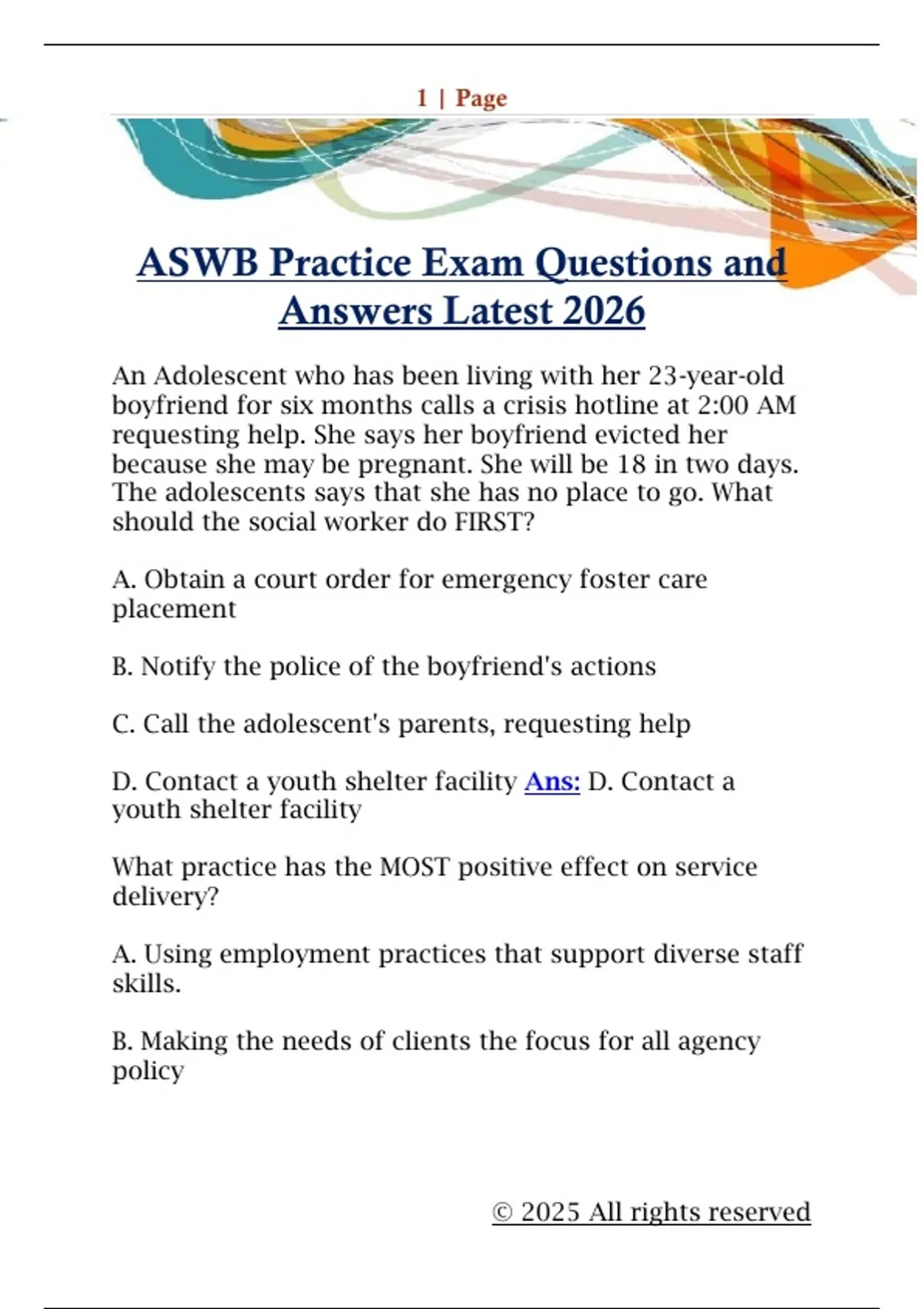 ASWB Practice Exam Questions and