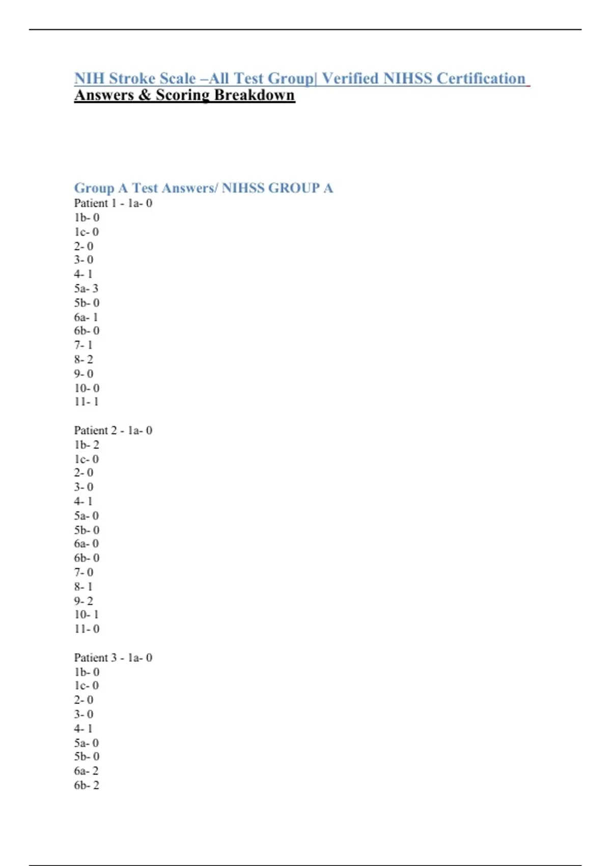 Group A Test Answers/ NIHSS GROUP A