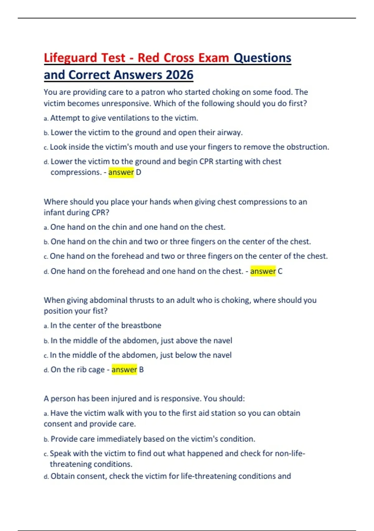and Correct Answers 2026