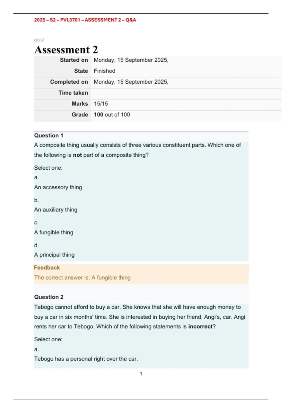 2026 - PVL3701 - ASSESSMENT 2 - QUESTIONS AND ANSWERS - SEMESTER 1