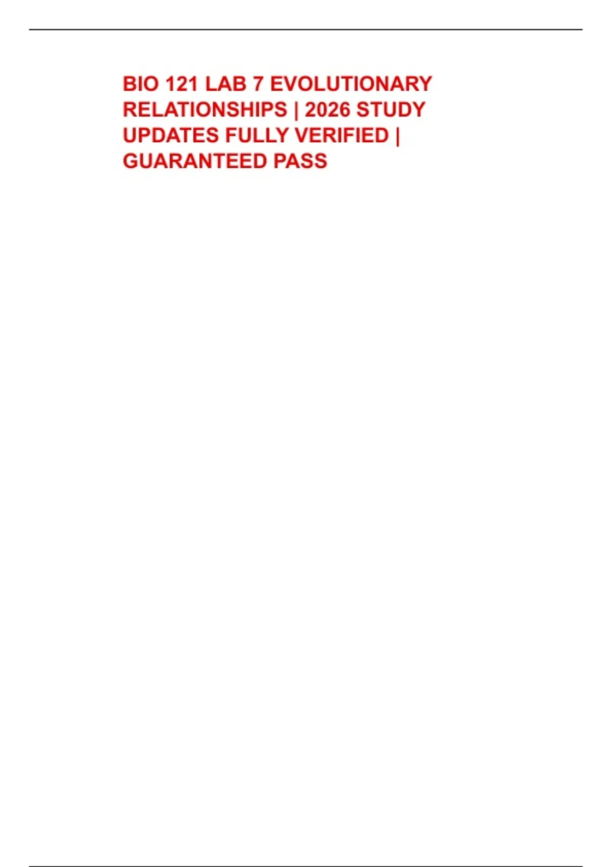 BIO 121 LAB 7 EVOLUTIONARY RELATIONSHIPS | 2026 STUDY UPDATES FULLY VERIFIED | GUARANTEED PASS