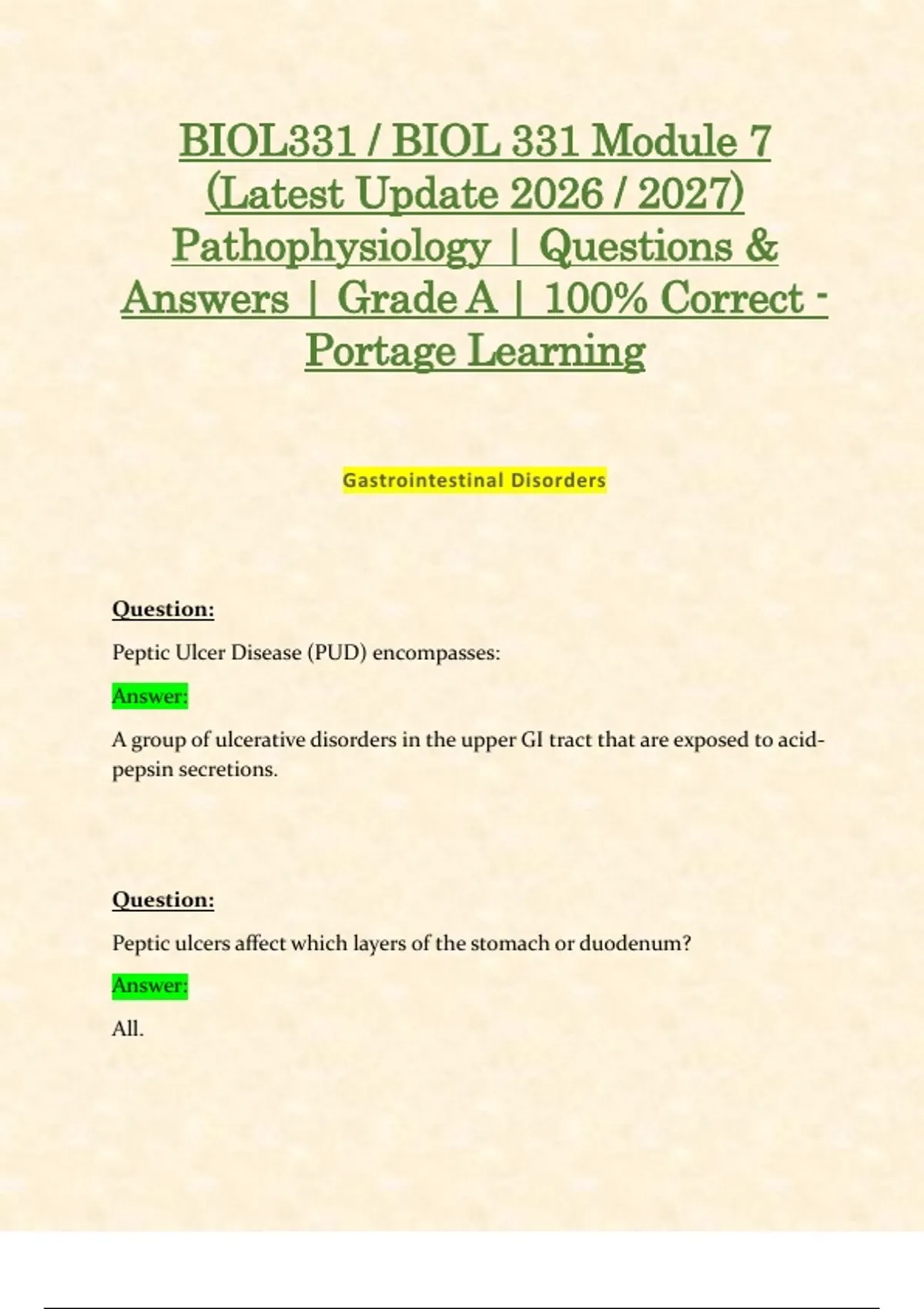 Peptic Ulcer Disease (PUD) encompasses: