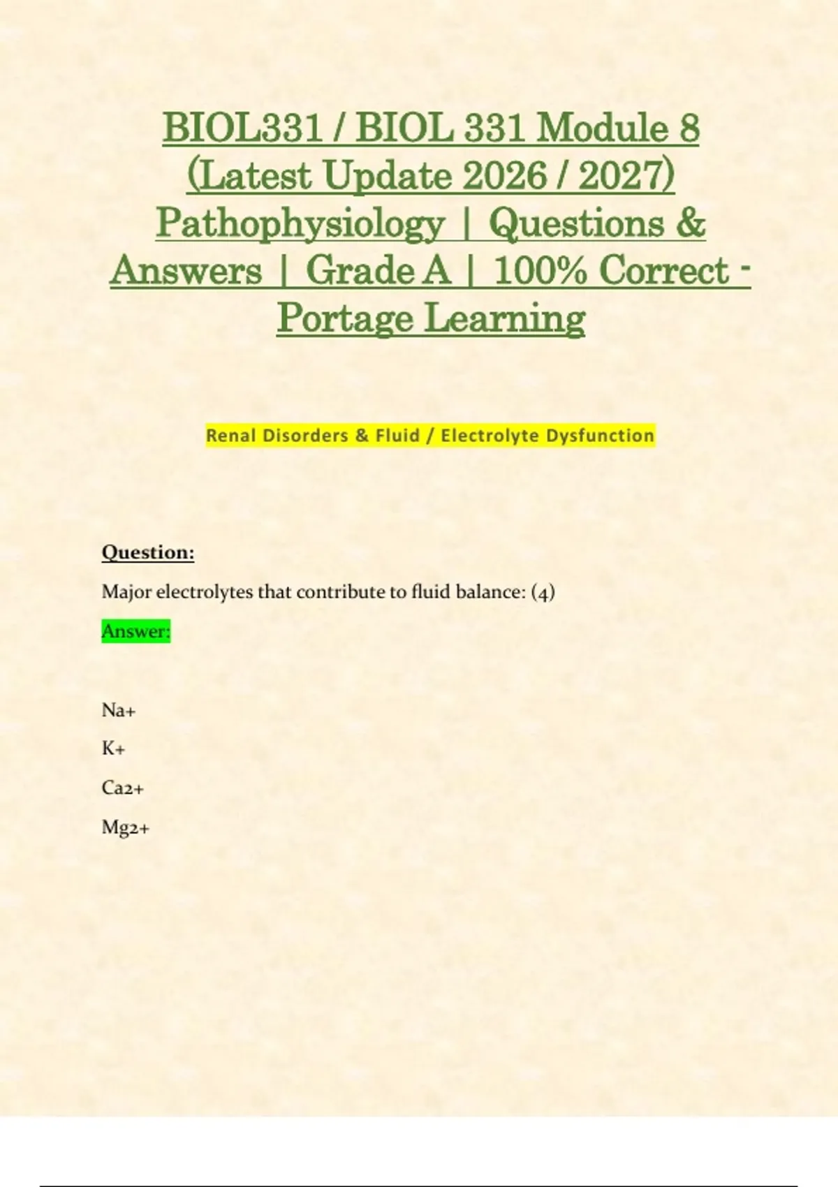 Renal Disorders & Fluid / Electrolyte Dysfunction