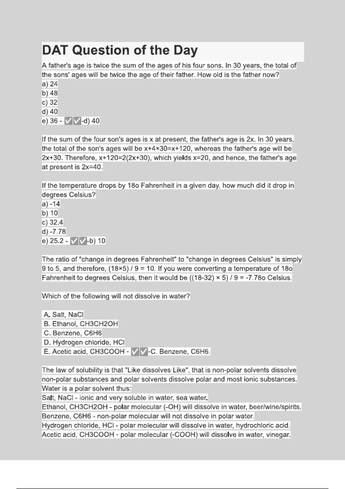 DAT Question of the Day Questions with 100
