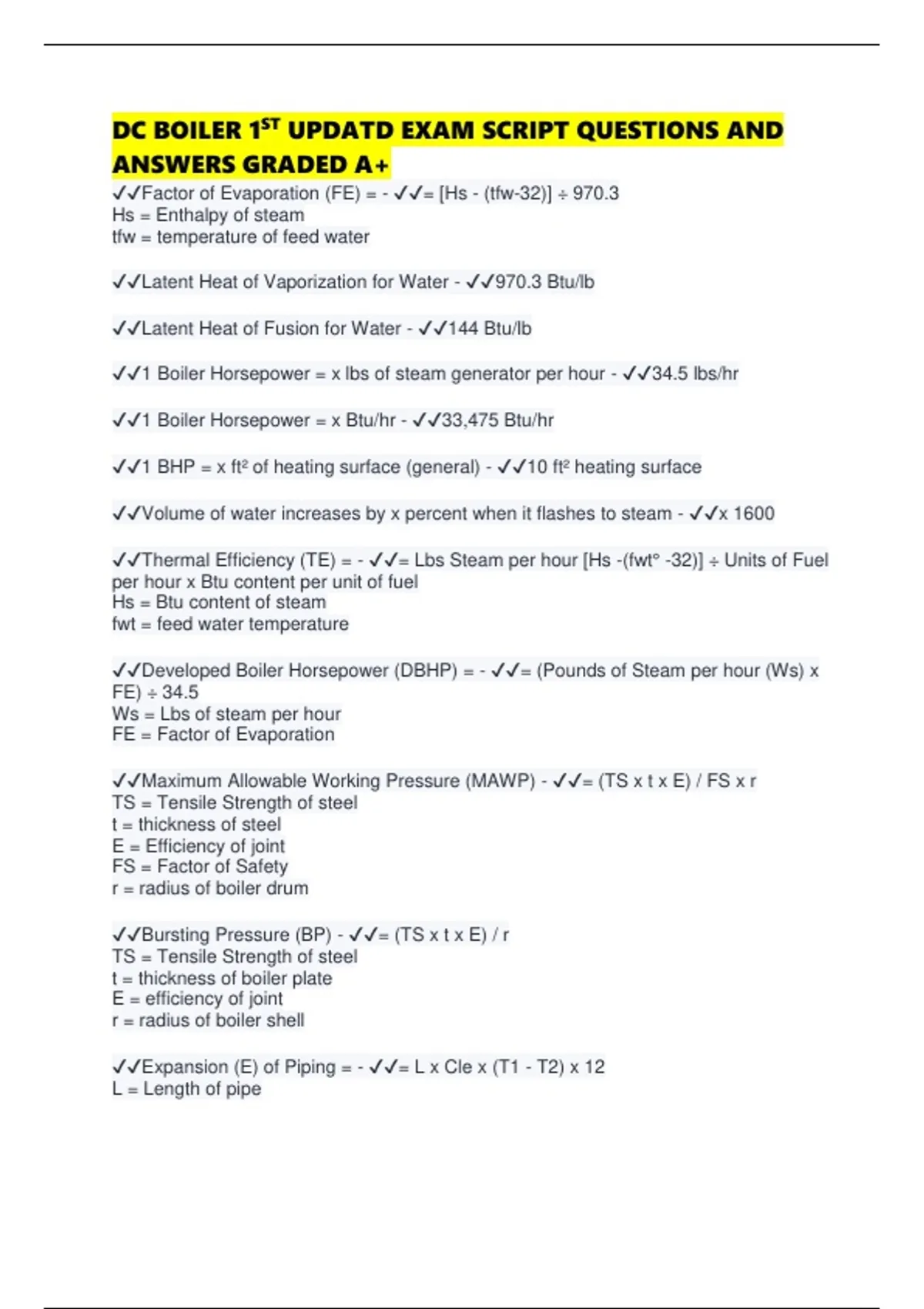 ✔✔Thermal Efficiency (TE) - ✔✔= Ws x [Hs -(fwt - 32)] / Wf x C