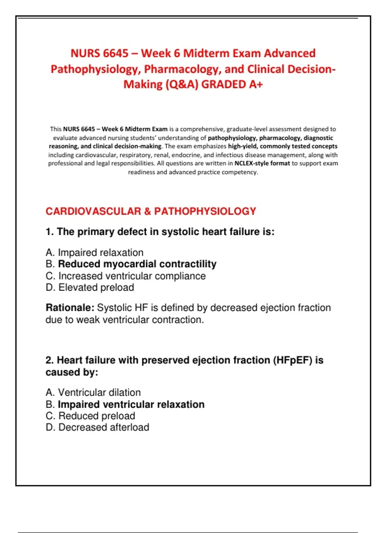 This NURS 6645 – Week 6 Midterm Exam is a comprehensive, graduate-level assessment designed to