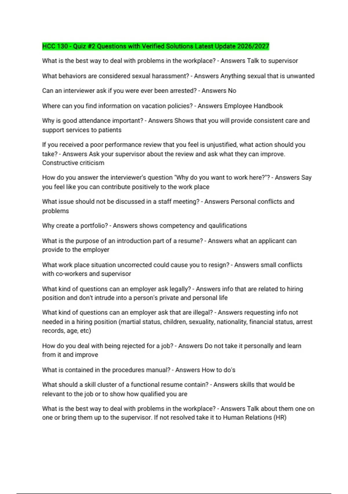 What work place situation uncorrected could cause you to resign? - Answers small conflicts
