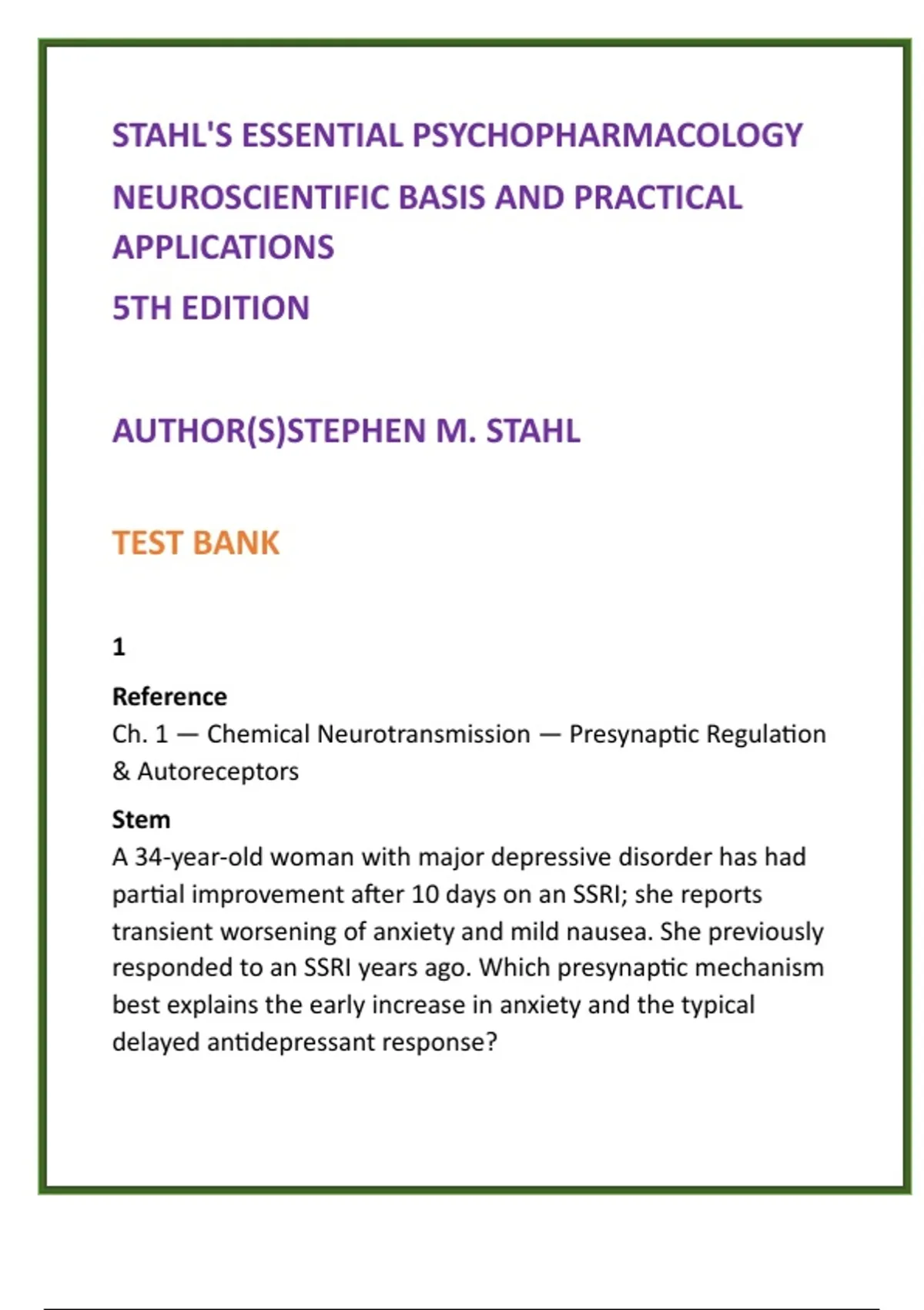 Stahl, S. M. (2021). Essential Psychopharmacology (5th ed.). Ch.