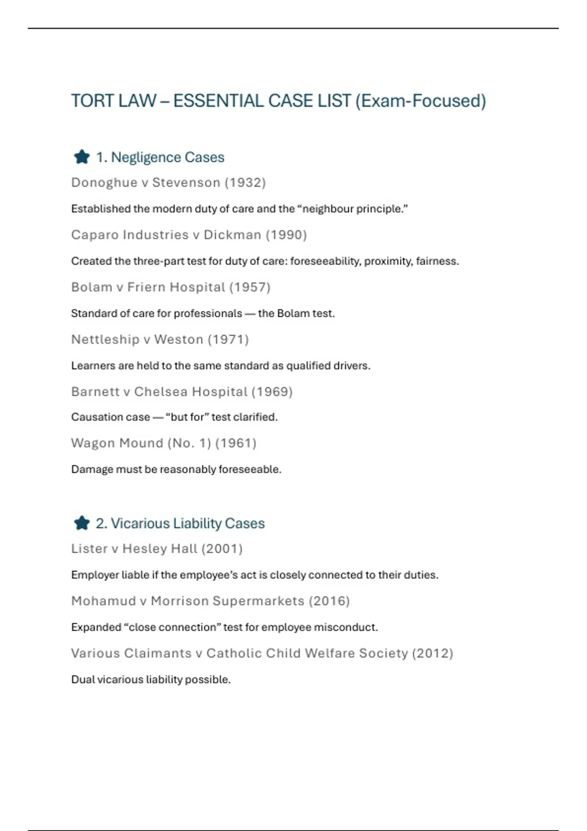 ⭐ 1. Negligence Cases