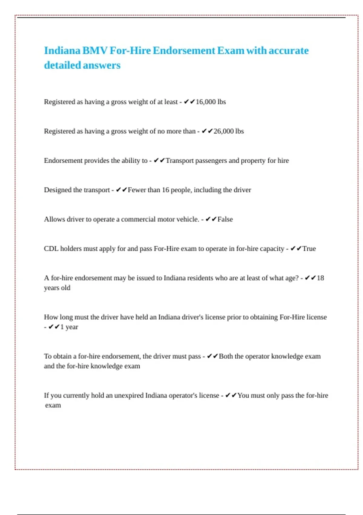 Indiana BMV For-Hire Endorsement Exam with accurate || || || || || || ||