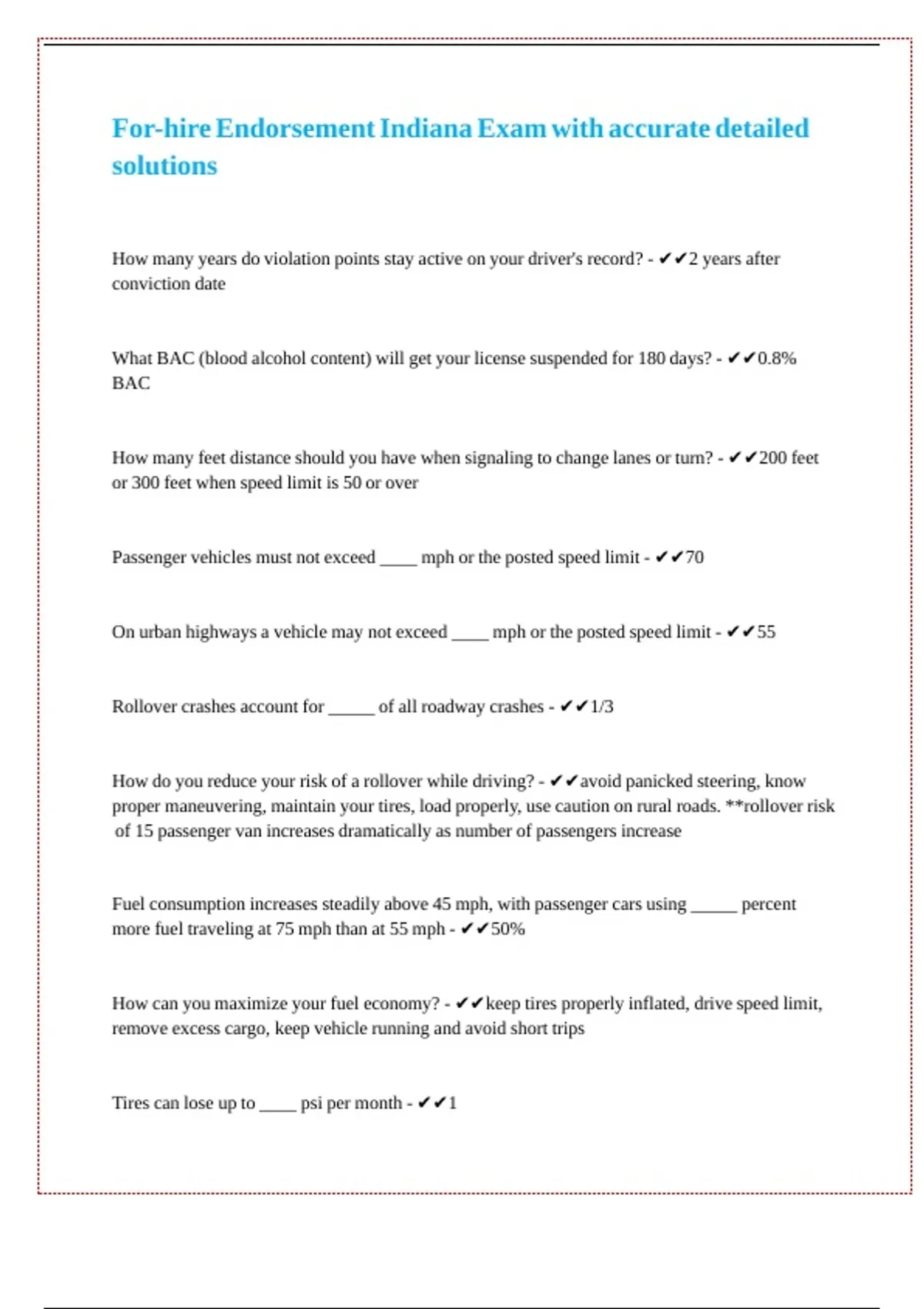 For-hire Endorsement Indiana Exam with accurate detailed || || || || || || ||