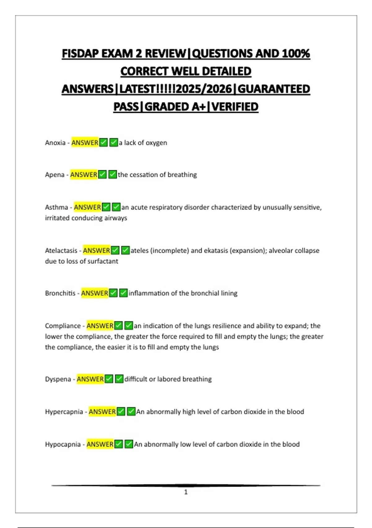 Asthma - ANSWER an acute respiratory disorder characterized by unusually sensitive,