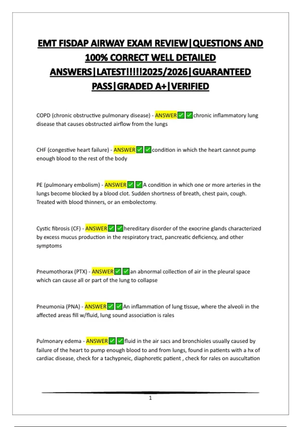 Pulmonary edema - ANSWER fluid in the air sacs and bronchioles usually caused by
