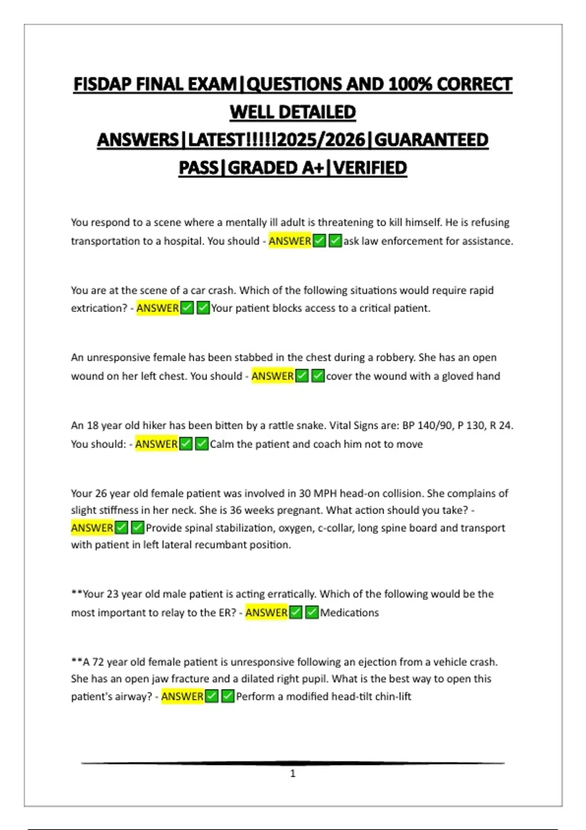 - ANSWER Unresponsive 25 year old with a suspected spinal injury