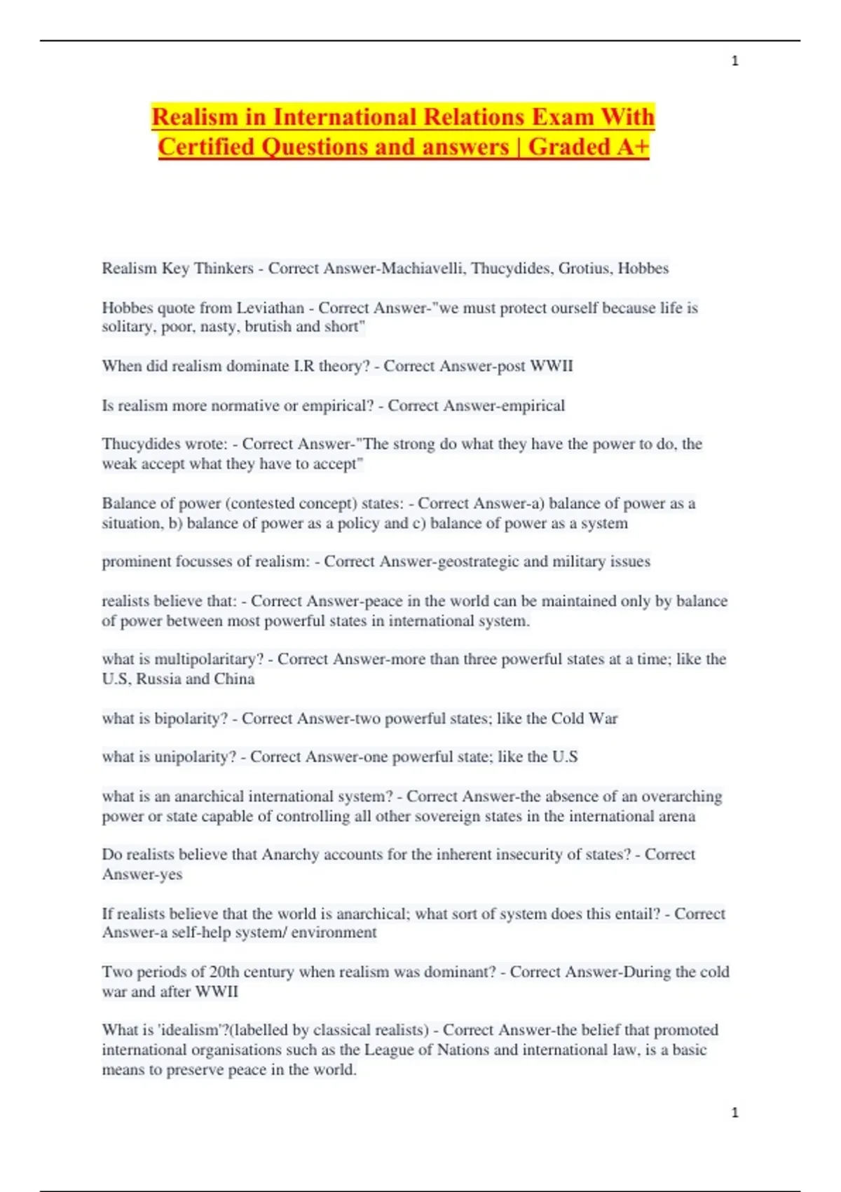prominent focusses of realism: - Correct Answer-geostrategic and military issues