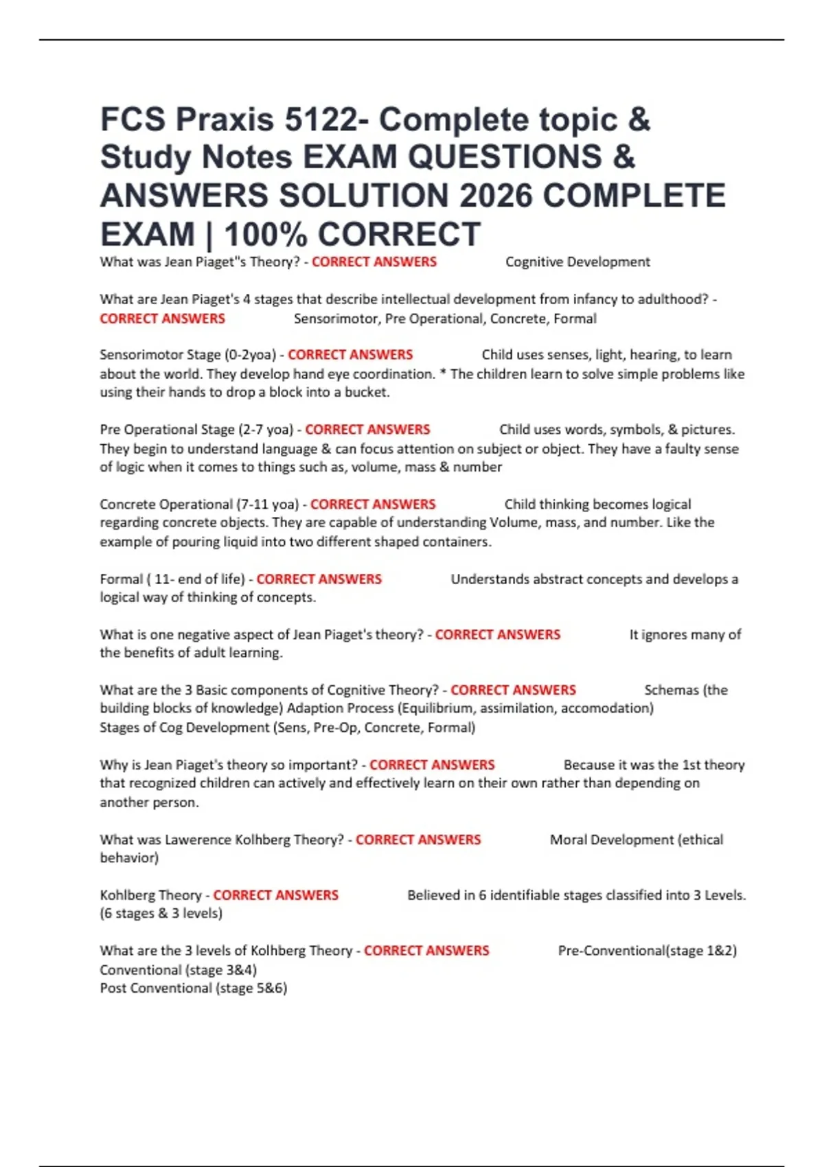 FCS Praxis 5122- Complete topic & Study Notes EXAM QUESTIONS & ANSWERS SOLUTION 2026 COMPLETE EXAM | 100% CORRECT