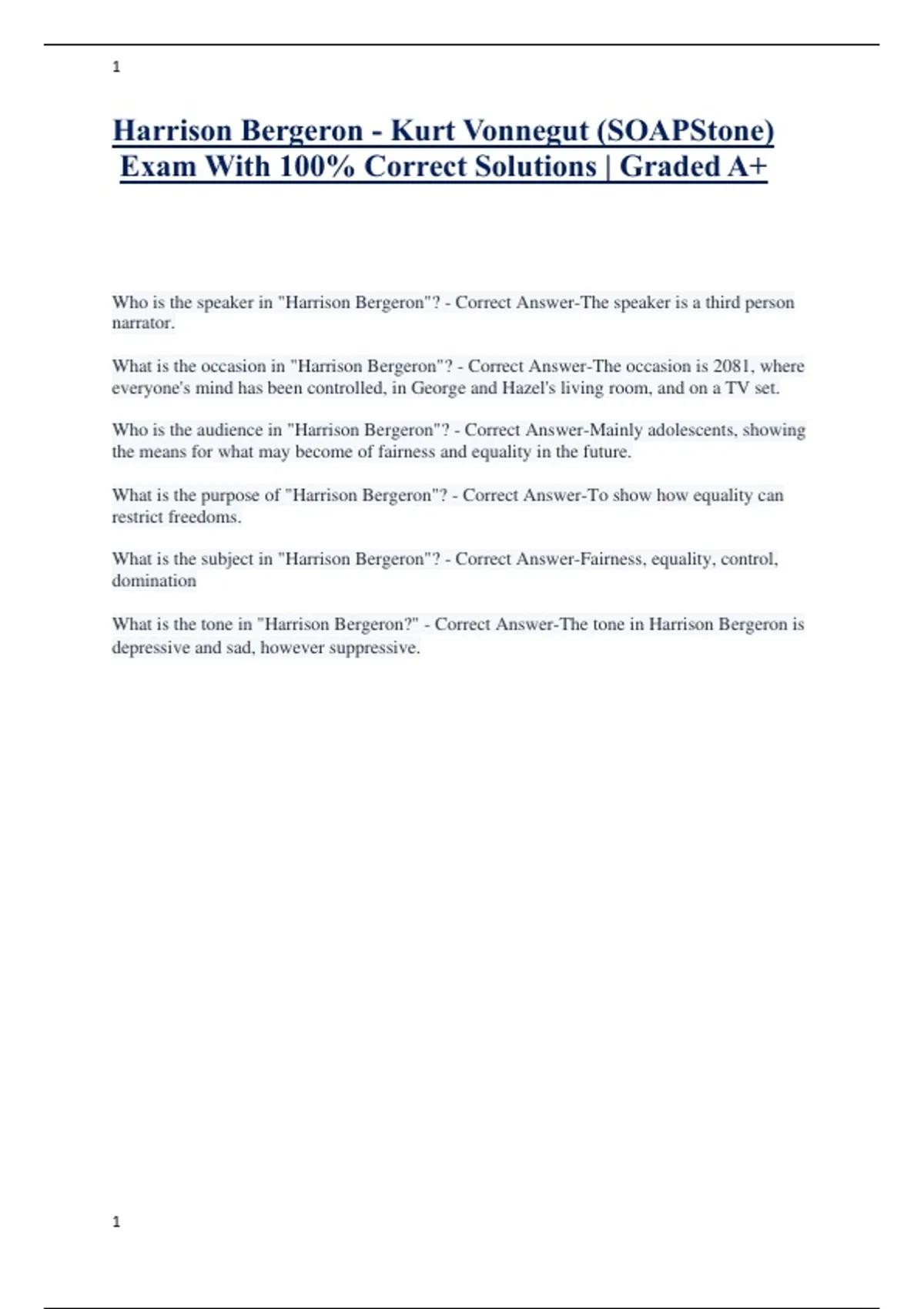 Harrison Bergeron - Kurt Vonnegut (SOAPStone)