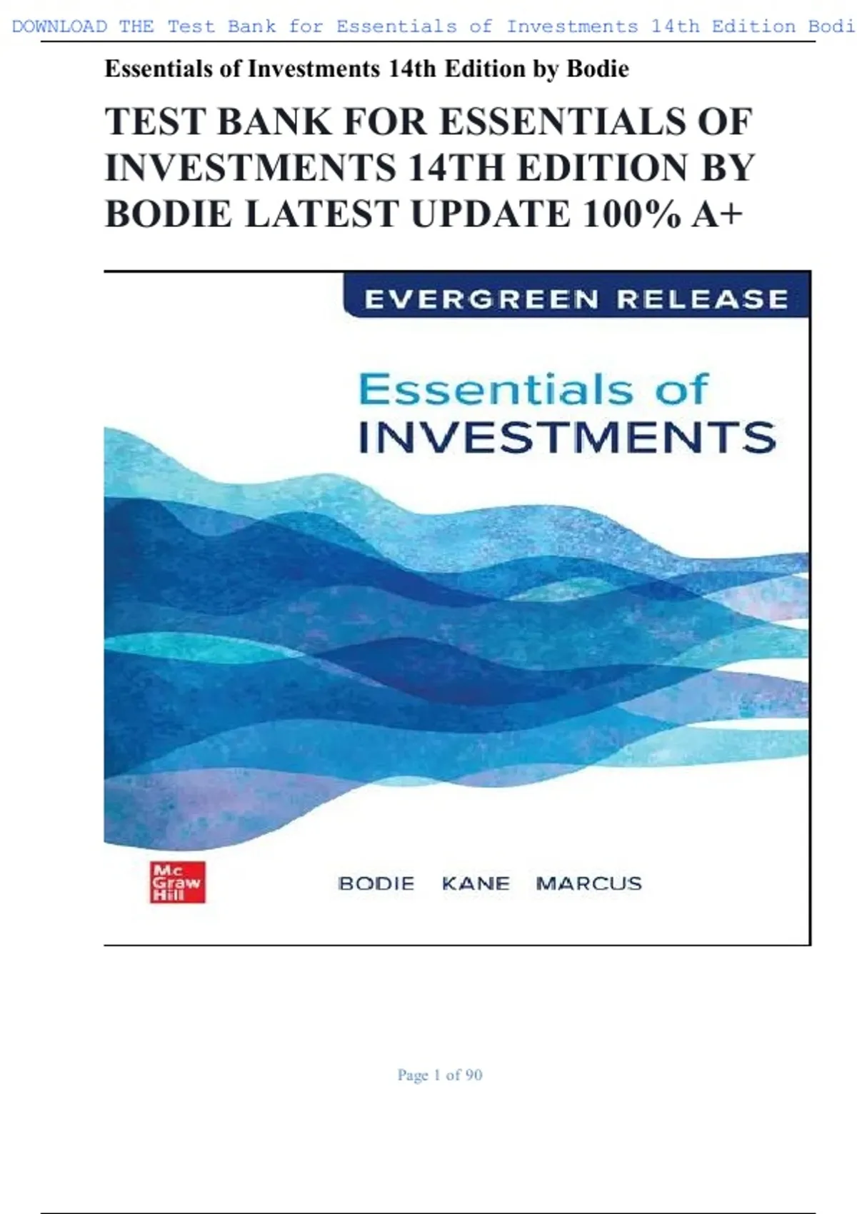 DOWNLOAD THE Test Bank for Essentials of Investments 14th Edition Bodi