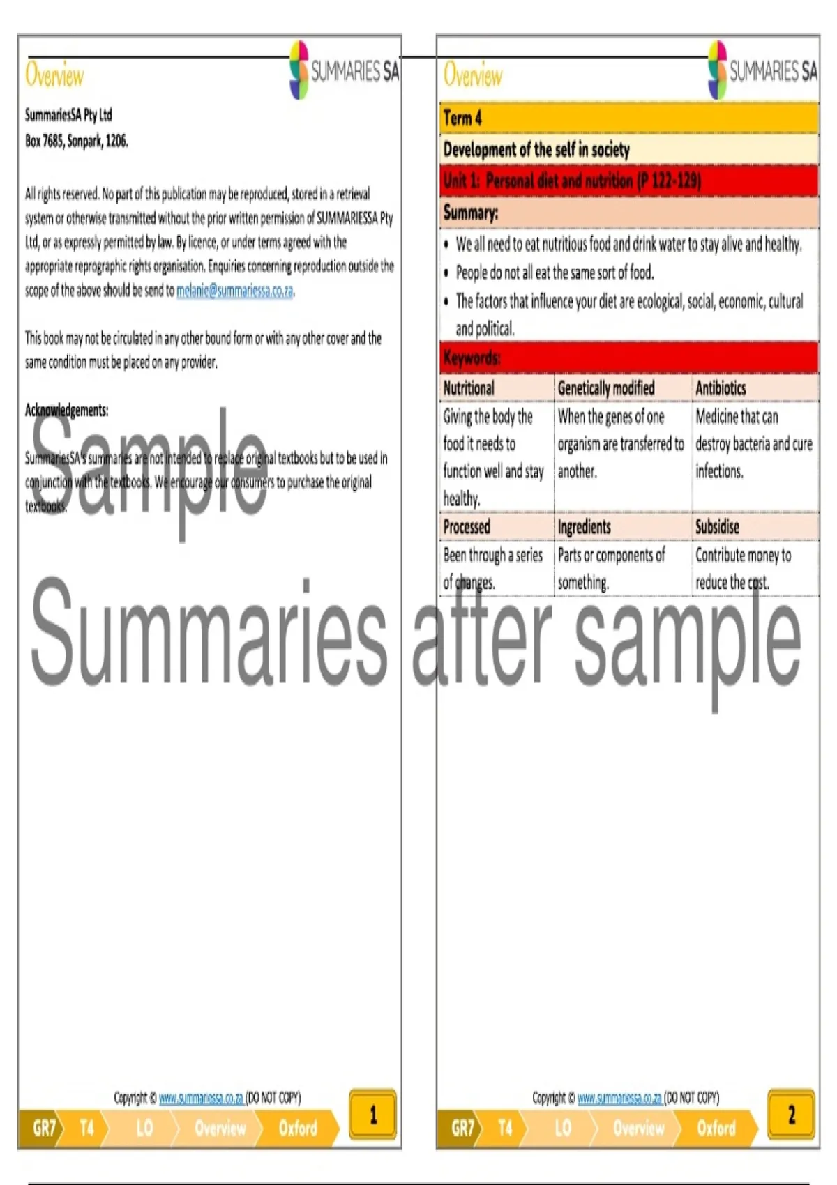Summaries are composed using the Oxford Headstart textbooks’ Term 4 work with examples and supplementary notes. Development of the self in society - Unit 1-6:  Personal Diet and Nutrition | Common Diseases | Role of Oral Traditions and Scriptures in Major Religions in South Africa | Recreational Programmes