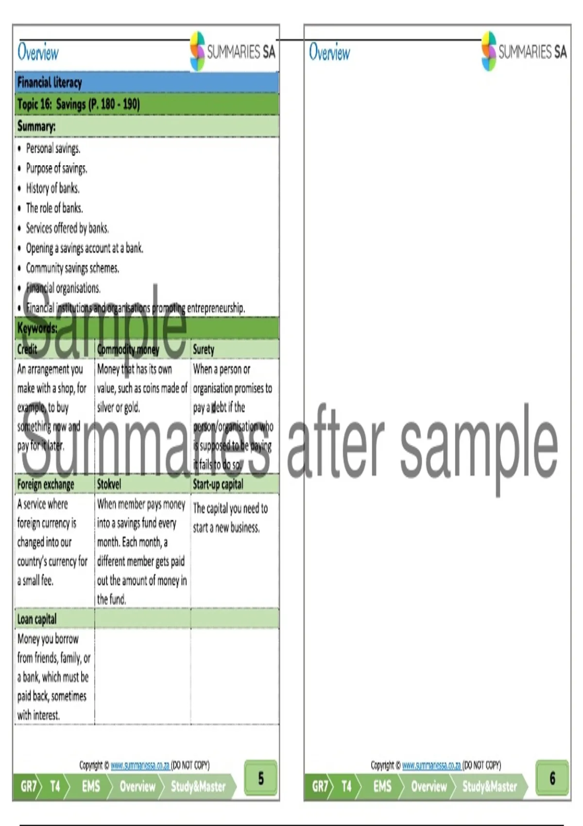 Summary Grade 7 Economic and Management Sciences (EMS) Term 4 (Study & Master) - Summaries