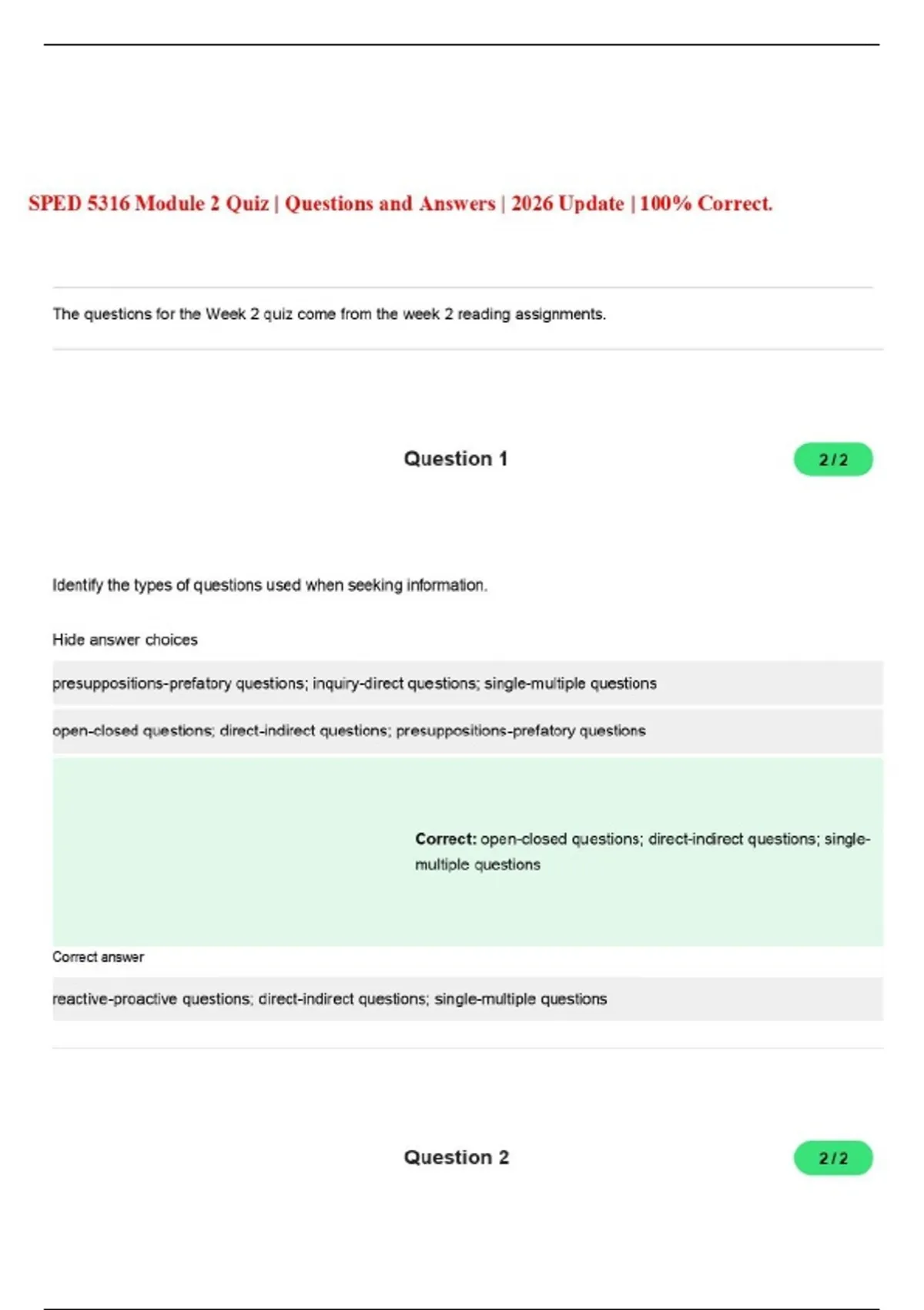SPED 5316 Module 2 Quiz | Questions and Answers | 2026 Update | 100% Correct.