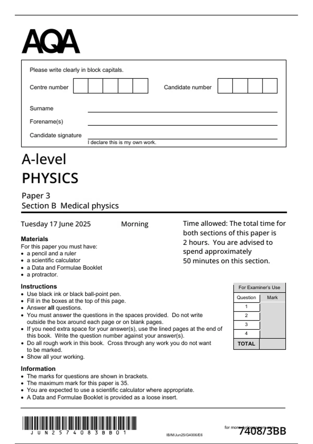 • The maximum mark for this paper is 35.